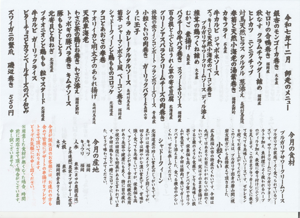 そんな想いで毎月お客様へのメニューを考えております!
