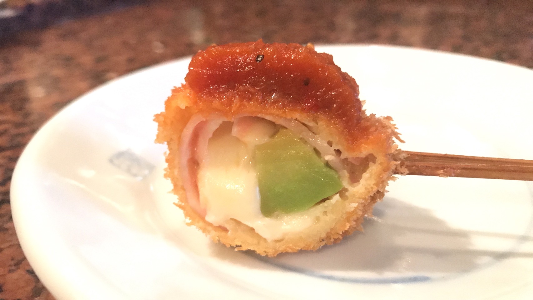 「モッツァレラチーズとアボカドのベーコン巻き」