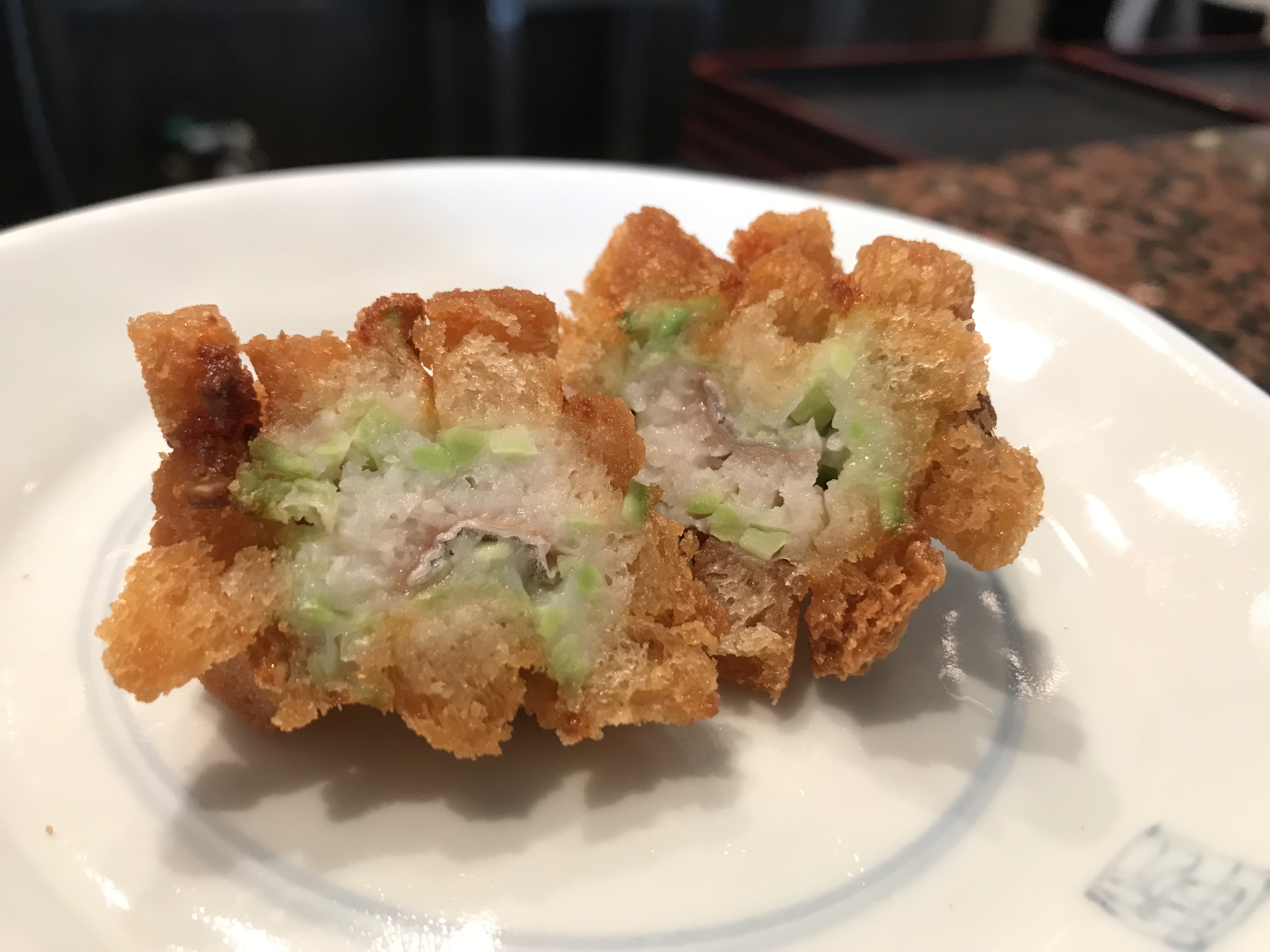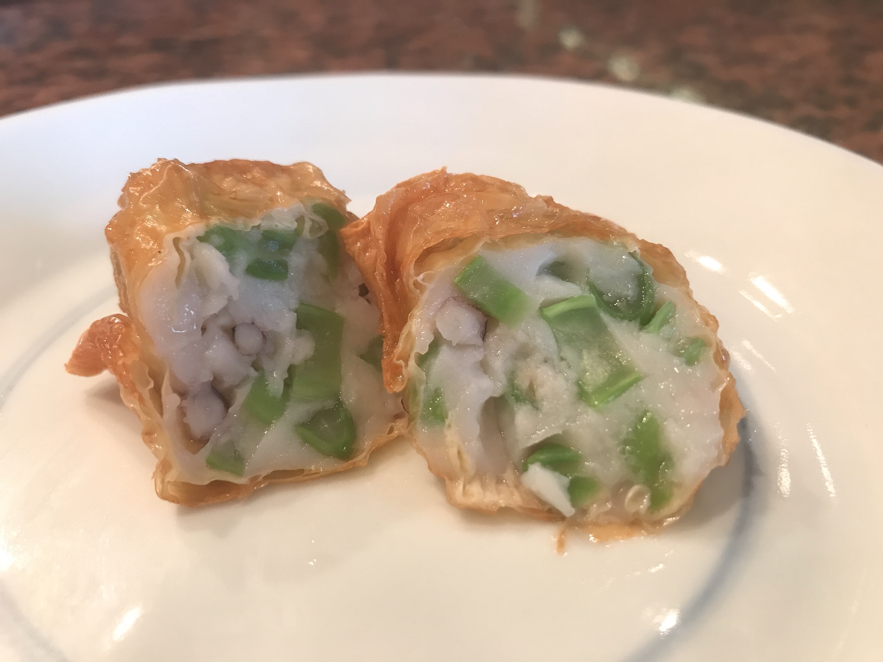 「アオリイカ(水イカ)とインゲンの湯葉巻き」