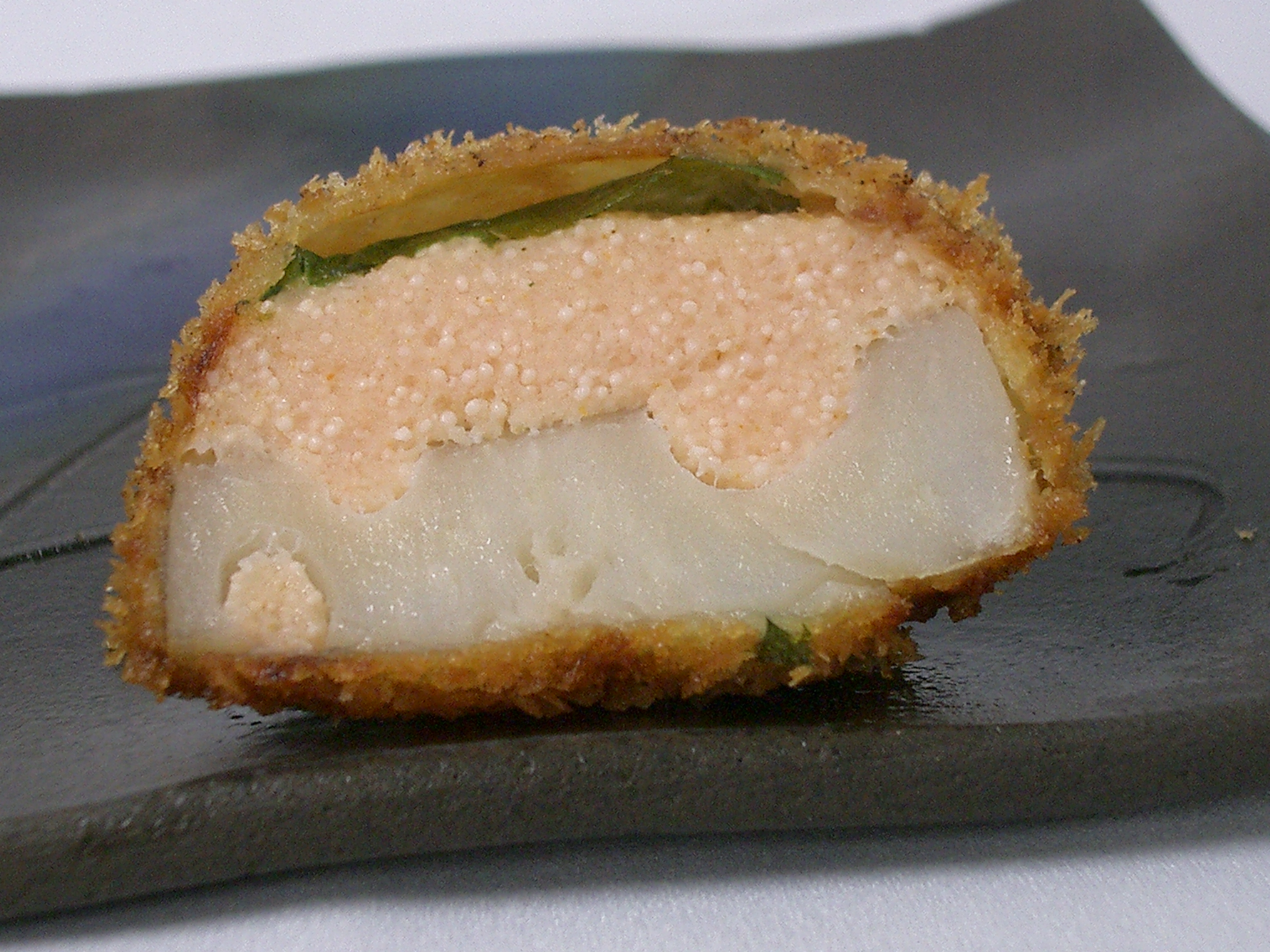 「蓮根の明太しんじょう詰め 青しそ巻き」