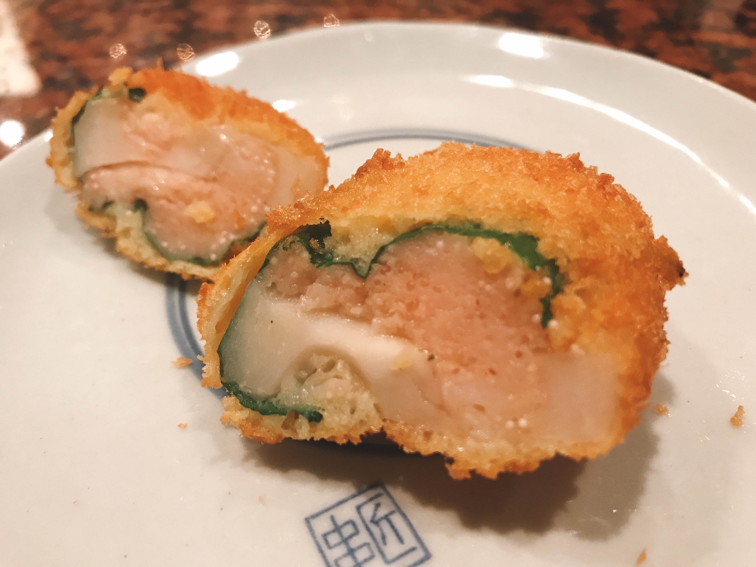 「蓮根の明太しんじょう詰め 青しそ巻き」
